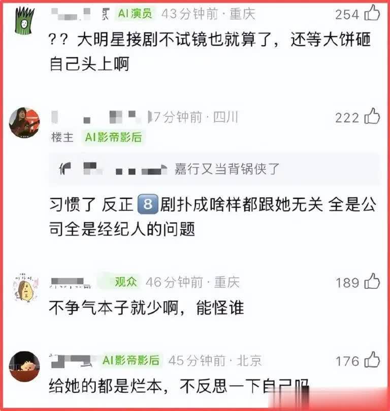 随着话题发酵,两极分化的争议彻底引爆全网。支持者辩解:“热巴已经很努力了,古偶翻车不全是她的错,妆造和剧本才是关键”“她的颜值摆在那里,就算剧情一般,看脸也不亏”“没剧本可接是内娱现状,不能只怪她一个人”;反对者则犀利回怼:“努力不等于有实力,出道13年演技没进步,还好意思说被动?”“普通人找工作都知道主动面试,她一个顶流却等着剧本上门,太敷衍”“占着顶流资源不进步,就是浪费机会,别拿‘被动’当借口”。更有网友深层探讨:顶流艺人的“被动”,到底是行业困境,还是自身不上心?颜值红利能吃一辈子吗?演员的核心,到底是颜值还是演技?